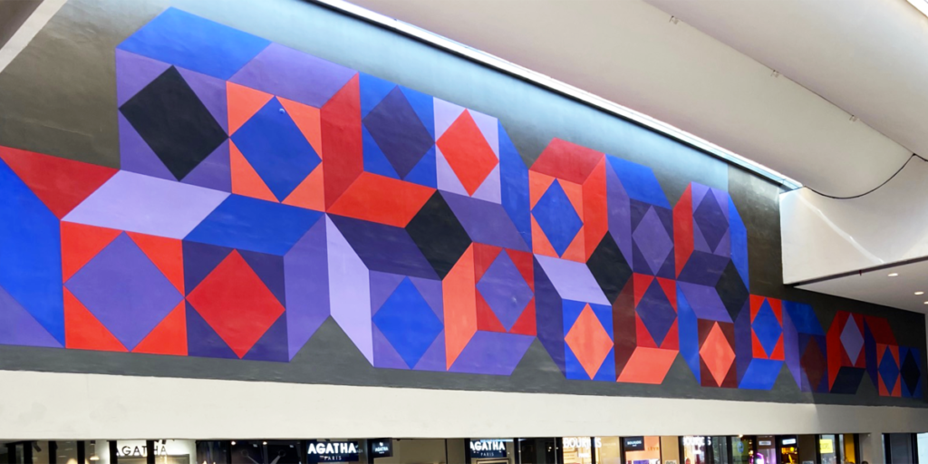 Dès les années 1950, Vasarely souhaite que l’art sorte des musées. Il conçoit des intégrations monumentales dans l’architecture et l’espace urbain. On peut citer la façade de la gare Montparnasse à Paris ou encore les réalisations de la Fondation Vasarely à Aix-en-Provence. L’idée est simple mais ambitieuse : offrir une expérience esthétique directe au passant, sans médiation institutionnelle.
